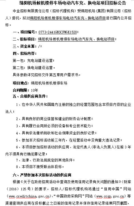 綿陽機(jī)場候機(jī)樓停車場電動汽車充、換電站項目招標(biāo)公告